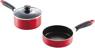 和平フレイズ お弁当 離乳食 少量調理に ミニサイズ フライパン&鍋 セット 16cm レッド ガラス蓋付 IH・ガス対応 RB-1922
