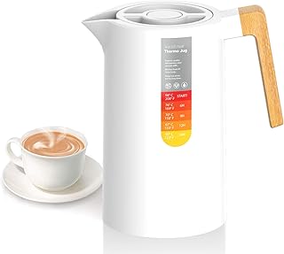 ALTENG 魔法瓶 保温ポット 卓上ポット 1L 保温 保冷 真空断熱構造 木製ハンドル付き ステンレス鋼304 ダブル ステンレス 保温卓上ポット ステンレスポット 12時間保温 24時間保冷 開閉簡単 家庭用 業務用 おしゃれ ホワイト