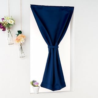 カフェカーテン オーダー 1級遮光 防炎 無地 HAUSKA ネービー【幅60cm 丈95cm】フラットタイプ