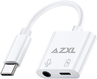 AZXL Type C イヤホン 変換アダプター USB C 2 in 1 イヤホン 変換ケーブル タイプC to 3.5mm イヤホンジャック 音楽+充電を同時に利用可 音声通話/音量調節/音楽 iPad Pro 12.9 2018/iPad Pro 11 /Google pixel 3/pixel 3XL Type-Cポートのデバイスに対応 (ホワイト)