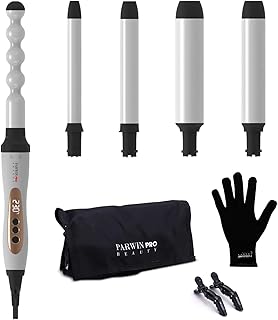 PARWIN ヘアアイロンカール 五つのバレル付き マイナスイオン 温度LCD 表示 プロ仕様 100℃~232℃ 14段階温度調節 自動電源OFF機能 火傷防止 プロ仕様 360°回転2.5mコード/耐熱手袋/日本語説明書