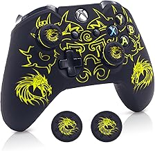BRHE Xbox One/Xbox One S コントローラースキン、滑り止めシリコンカバープロテクターケースアクセサリーセット Microsoft Xbox 1 ゲームパッド ジョイスティック サムグリップキャップ2個付き レッド ブルー ブラック イエロー BR-12