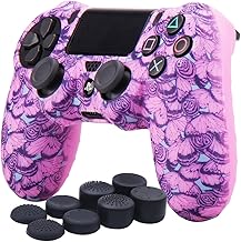 Hikfly シリコンコントローラーカバースキンプロテクターキット PS4 /PS4 Slim/PS4 Proコントローラー用 FPS Proサムグリップキャップ8個付き PS4 Print Style ピンク