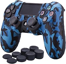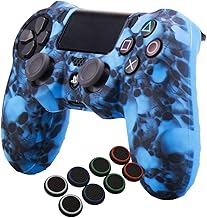 YoRHa 水転写プリント 迷彩シリコンカバー スキンケース Sony PS4/Slim/Pro Dualshock 4コントローラー用 1個 (ブルー) プロサムグリップ付き 8個