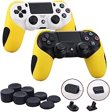9CDeer シリコン保護スリーブケースカバー 2個 + サムグリップアナログキャップ8個 + 防塵プラグ2個 PS4/Slim/Proコントローラー用 イエロー