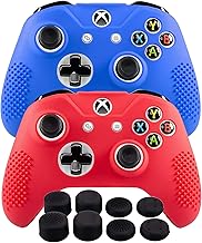UUShop ソフトシリコンパーティクル厚手スキンカバー Xbox One用スリムコントローラーセット 保留中 滑り止め レッド&ブルー