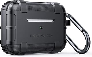AirPods Proケース カバー エアーポッズプロケース アップルイヤホン 保護ケース PC素材 超薄型 耐衝撃 防水 防塵 カラビナ・キーチェーン付き 充電便利 LEDライトが見える ワイヤレス充電対応 (ブラック)