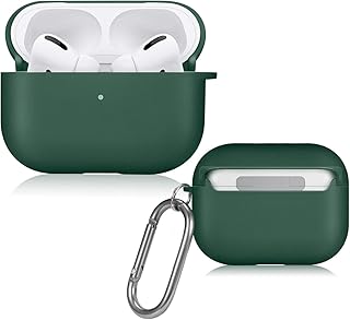 AirPods Proケース 2019年10月発売用 充電ケース シリコンケース カバー エアーポッズプロケース アップルイヤホン 保護ケース 耐衝撃 防水 防塵 カラビナ・キーチェーン付き 充電便利 LEDライトが見える ワイヤレス充電対応 バウンスキャリングケース ソフトスリムカバー(ミッドナイトグリーン)