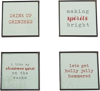 Mud Pie 42500005 クリスマスホリデーグラス 言葉 4枚セット コースターセット ワンサイズ レッド ホワイト