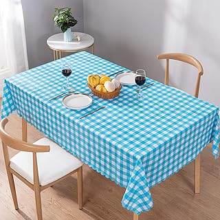 バッファロー格子縞テーブルクロス ブルーチェックテーブルクロス 防水 しわ防止 キッチン/ダイニングルーム/ピクニック用 こぼれ防止 汚れ防止 テーブルクロス 長方形 57 x 120インチ