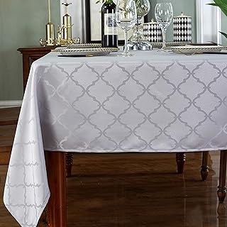 ジャカード長方形テーブルクロス 耐油性 こぼれ防止 しわ防止 ポリエステル生地 ヘビーウェイトテーブルカバー キッチン ダイニング アウトドア ピクニック デコレーション 60 x 84インチ グレー