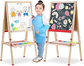 Lovinouse お絵かきボード 子供黒板 ホワイトボード 黒板 イーゼル 両面 木製 収納トレイ付き 高さ調整可能 折りたたみ式 子供用 木製イーゼル 看板 誕生日 クリスマス プレゼント 卒業祝い 伝言板 メニューボード 磁気 落書き 掲示板 (ナチュラルカラー)