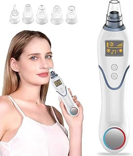 毛穴吸引器 6-in-1毛穴吸引機 黒ずみ角栓除去 美顔器 美容器 光線療法スキンケア 黒ずみ いちご鼻 5段階吸引力 5種類吸引ヘッド 温湿布 冷湿布 振動マッサージ 毛穴ケア 陽イオンと陰イオンのスキンケア USB充電式 大容量電池 LED表示 男女兼用 美容 無料のニキビ除去ピンセットセット
