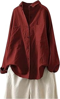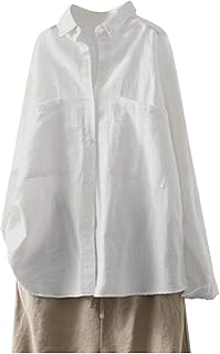 Gabrioir ボタン ブラウス レディース 綿麻 リネンシャツ 長袖/半袖 前開き vネック ワイシャツ aライン ゆったり トップス 女性 可愛い シャツ 薄手 シンプル おしゃれ カジュアル 大きいサイズ 上着 日常 tシャツ 春夏秋 通勤